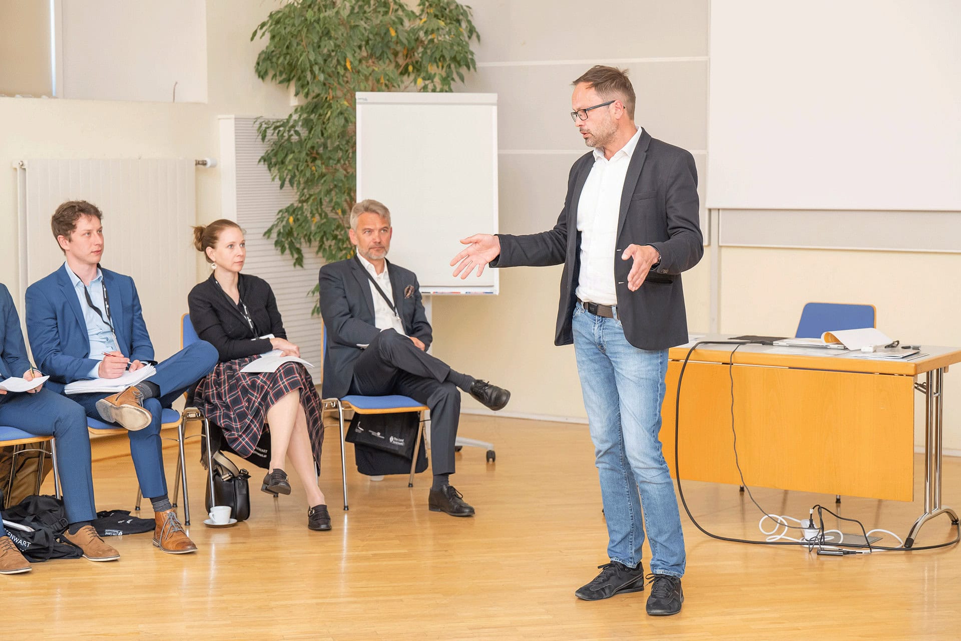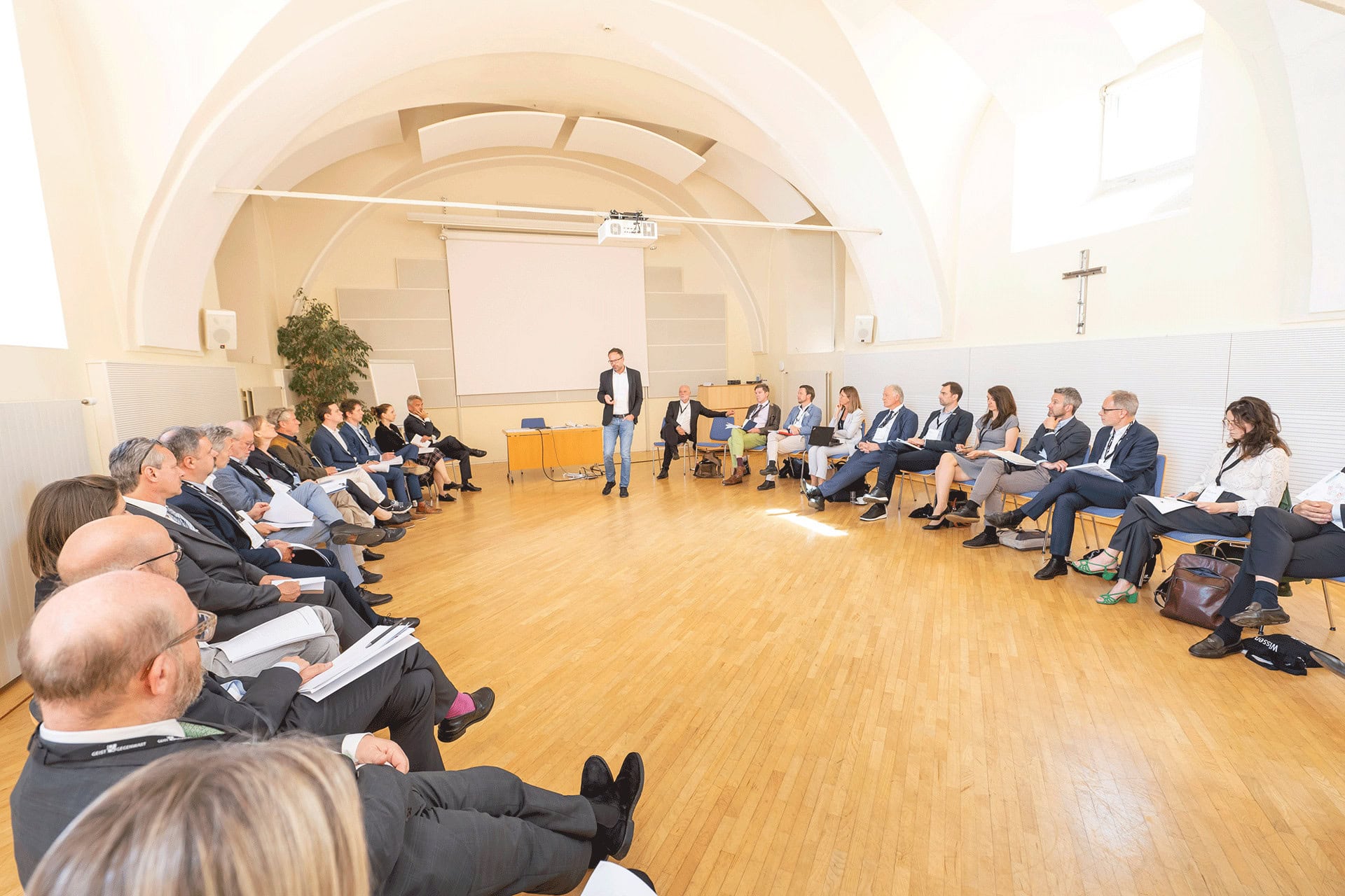 Mehr als 30 geladene Teilnehmer*innen aus Forschung, Wirtschaft und dem öffentlichen Sektor nahmen an der Fokusgruppe teil. So – neben dem Organisator Wiedenhofer – auch Eric Kirschner und Claudia Winkler von der JOANNEUM RESEARCH sowie Stefan Schafranek, Geschäftsführer der DIH SÜD, an der die Forschungseinrichtung beteiligt ist.