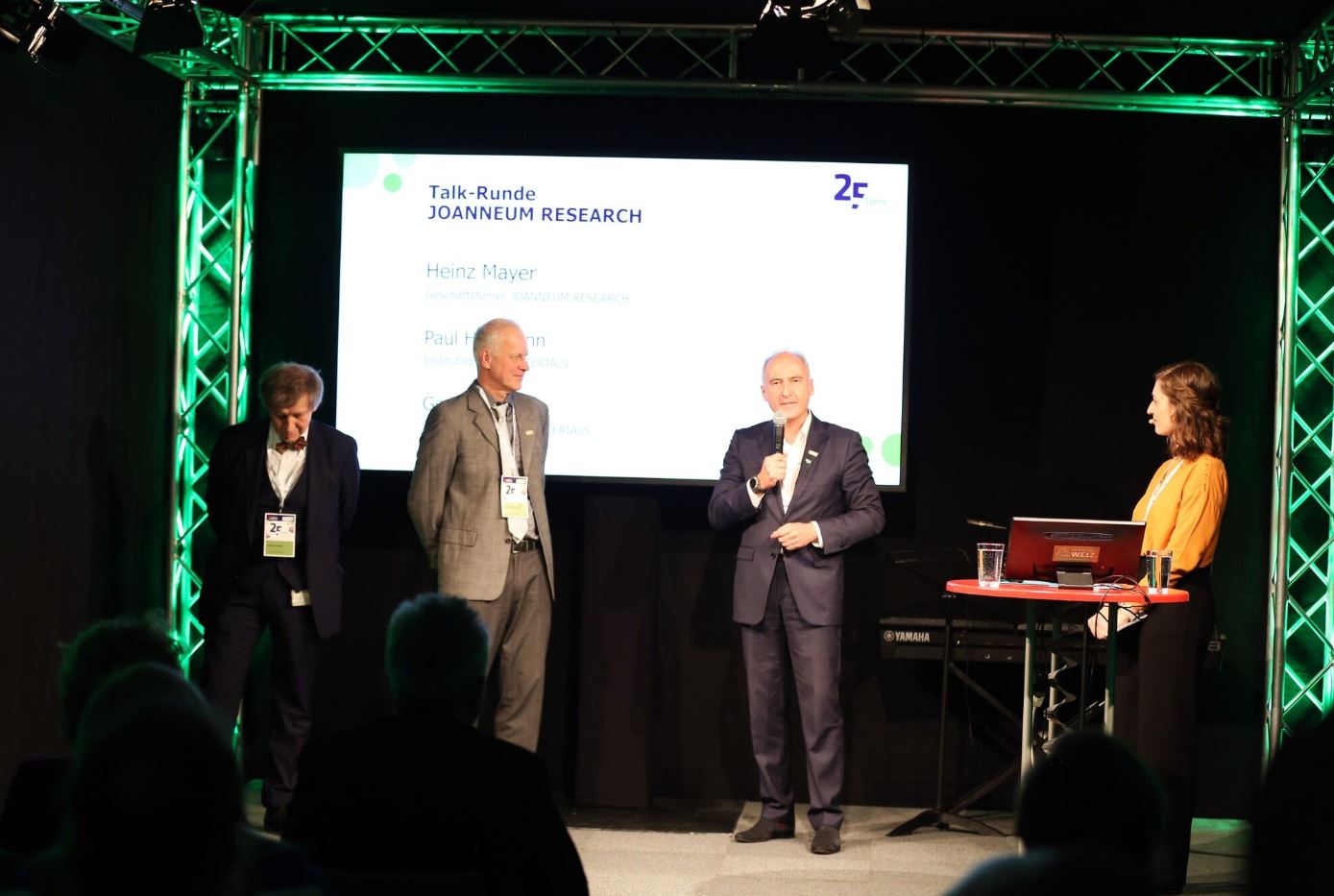 JR-Geschäftsführer Heinz Mayer führte gemeinsam mit Paul Hartmann, Direktor von MATERIALS und Georg Jakopic, ein Mitarbeiter der ersten Stunde am Standort, in einer Talkrunde durch Vergangenheit, Gegenwart und Zukunft des Instituts. Am Programm stand ebenso eine Talkrunde mit Erwin Eggenreich (Bürgermeister a.D. Stadt Weiz), Franz Nöhrer (Bürgermeister St. Ruprecht/Raab), Bernadette Karner und Roman Neubauer (Geschäftsführung Innovationszentrum W.E.I.Z.).