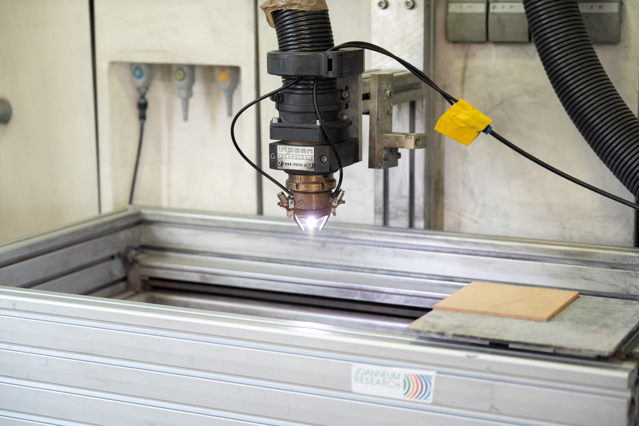 Die atmosphärische Plasmabeschichtung – die Beschichtung mittels Plasma ohne Vakuum in Luft – macht die direkte Funktionalisierung von Holz und bio-basierten Materialien möglich. Leiterbahnen können so umweltfreundlich ohne Kunststoff-Folien direkt aufgebracht werden. JOANNEUM RESEARCH forscht am Standort Niklasdorf an neuen Möglichkeiten für nachhaltige Innenarchitektur und intelligente Materialanwendungen.