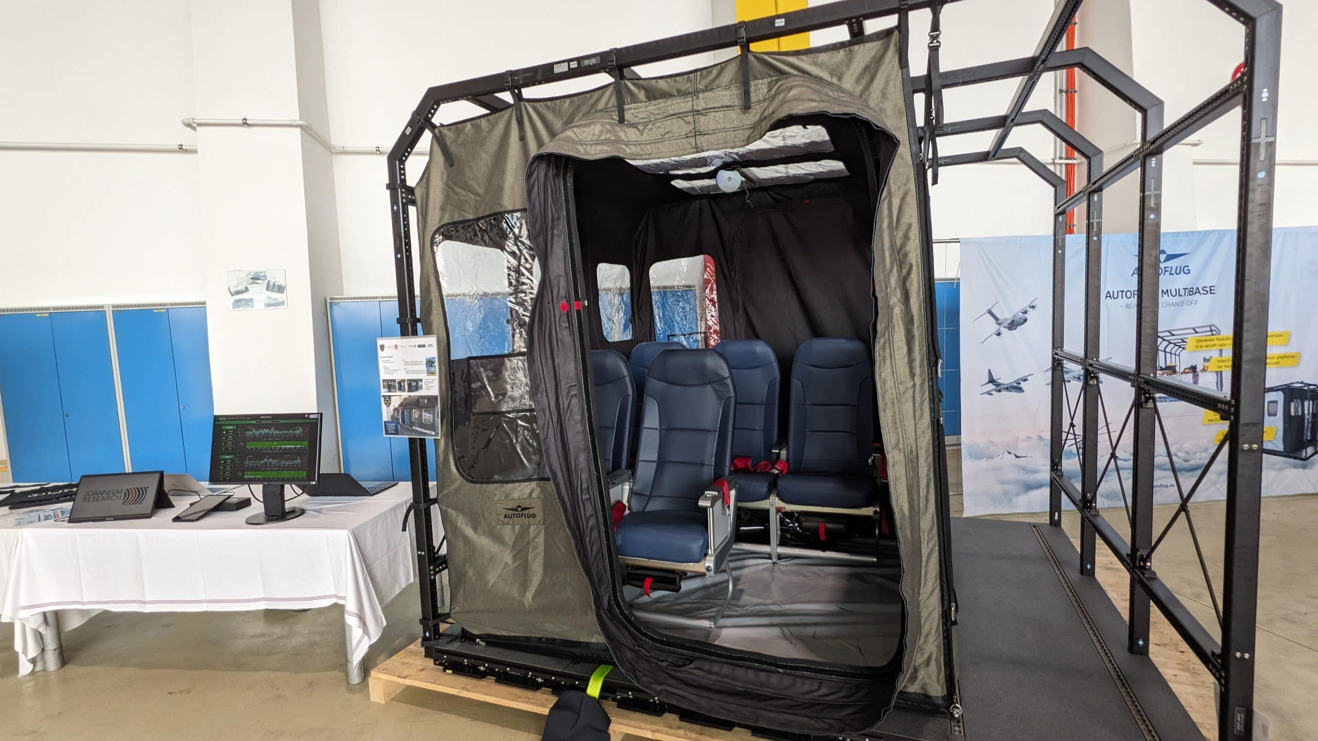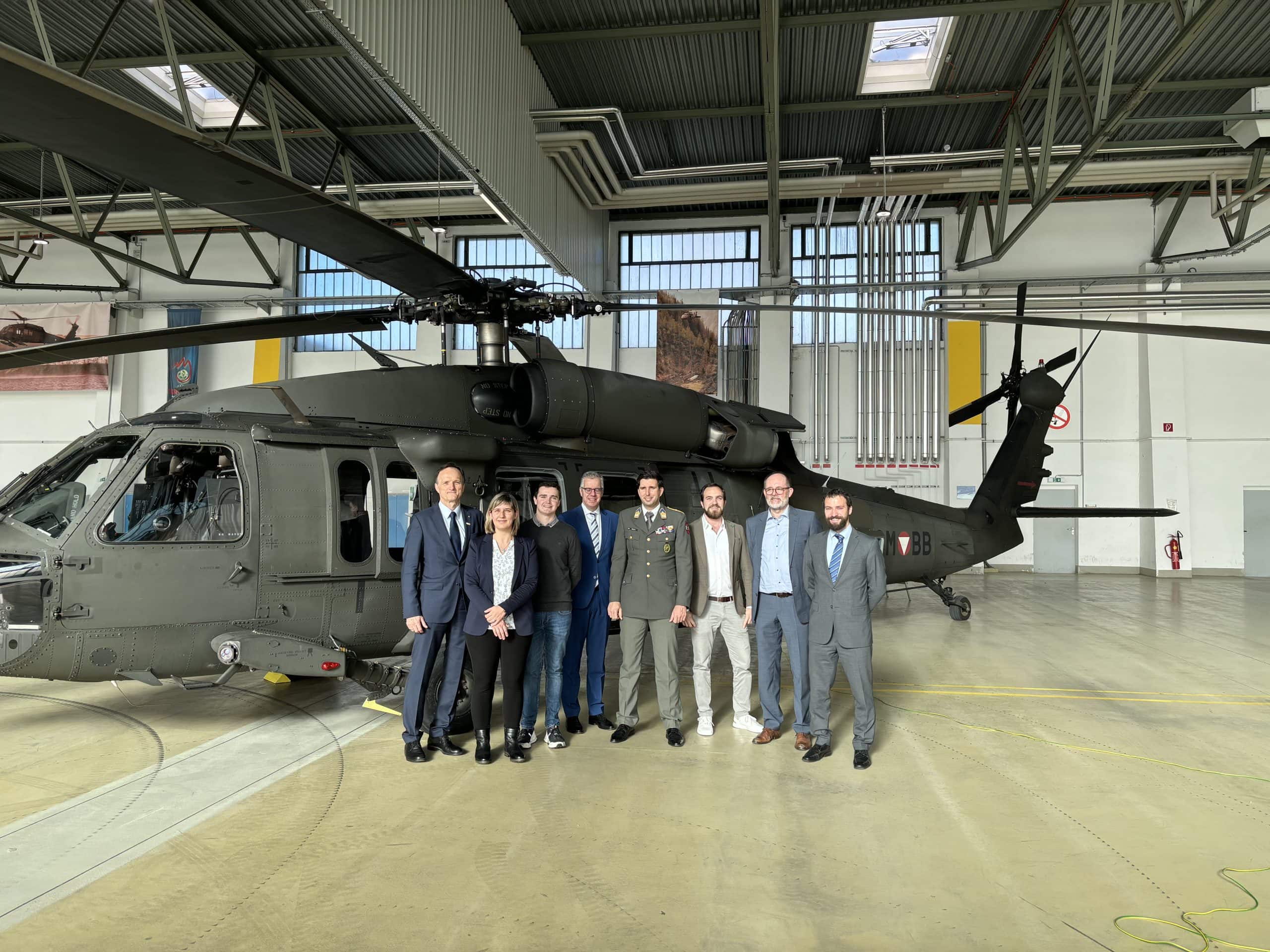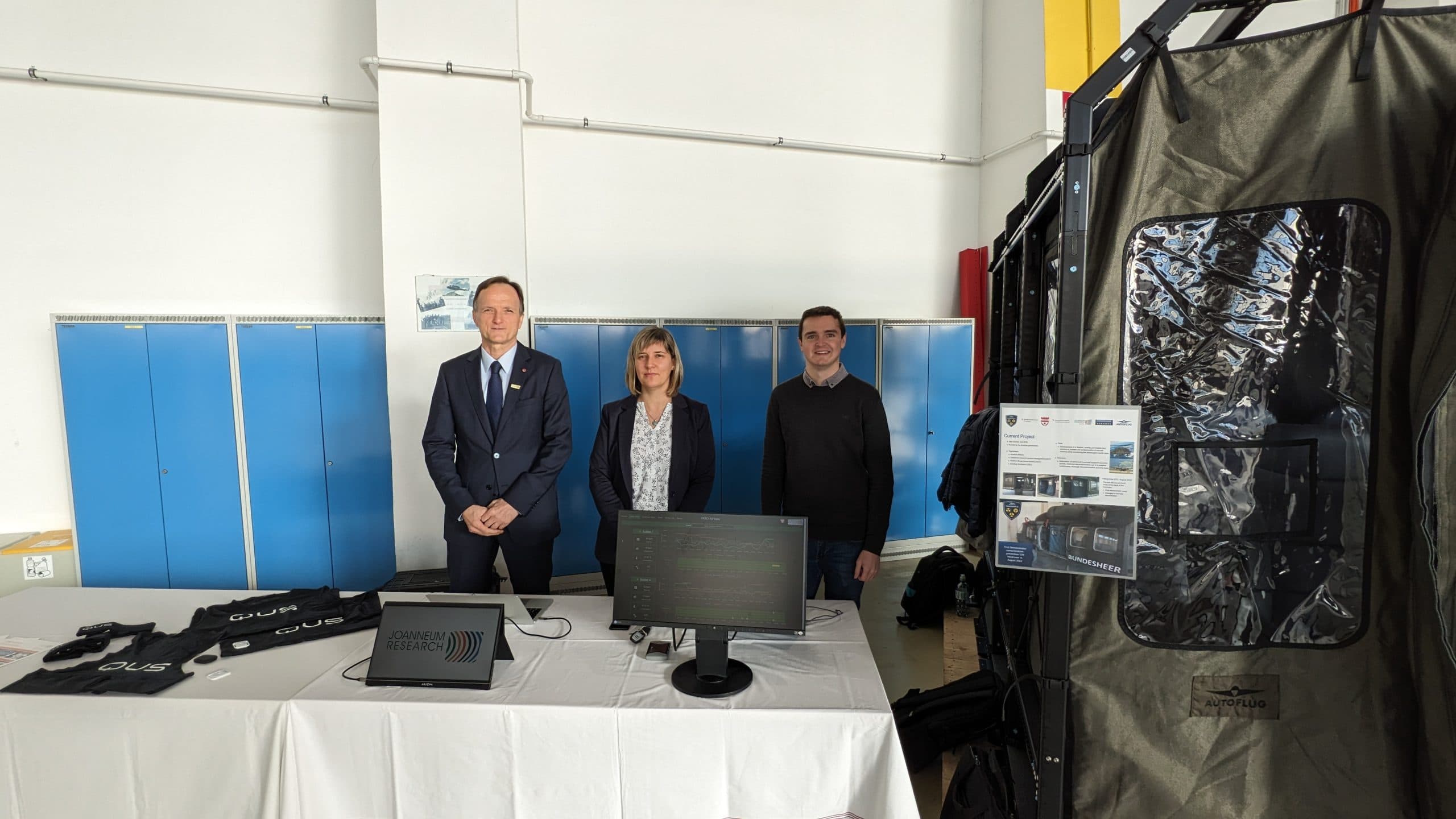 Am Fliegerhorst Brumowski in Langenlebarn in Niederösterreich fand am 20. November ein Pressetermin des österreichischen Bundesheeres mit hochrangigen Teilnehmer*innen aus Politik und Militär statt. Alexander Almer und sein Team der JOANNEUM RESEARCH DIGITAL wurde eingeladen, die Ergebnisse aus dem FORTE Projekt DEKO-AirTrans interessierten Gästen zu präsentieren und zu demonstrieren. Die Bundesministerin für Landesverteidigung Mag. Klaudia Tanner, Staatssekretär Florian Tursky, MSc MBA (BMF), Generalmajor Dr. Peter Vorhofer, Brigadier Wolfgang Luttenberger und Dr. Ralph Hammer (BMF) waren vor Ort und machten sich mit unserer flexiblen luftgestützten Transportlösung zur Verlegung von ABC-kontaminierten Personen vertraut.