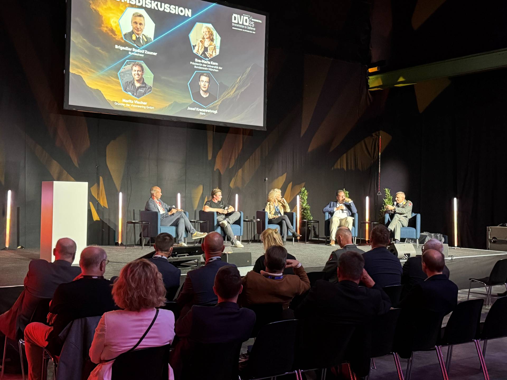 Der Kommandant der Österreichischen Luftstreitkräfte, Air Chief Generalmajor Mag. phil. Gerfried Promberger, MSS, sowie der Rüstungsdirektor des Österreichischen Bundesheeres, Generalleutnant MMag. Harald Vodosek, gaben Einblicke in aktuelle Beschaffungsprojekte zur Stärkung der Fähigkeiten in den Bereichen Drohnendetektion und -abwehr. Interessante Einblicke in die aktuellen Entwicklungen der Drohnennutzung im Ukrainekrieg wurden von Oberst dG Dr. Markus Reisner, PhD gegeben.