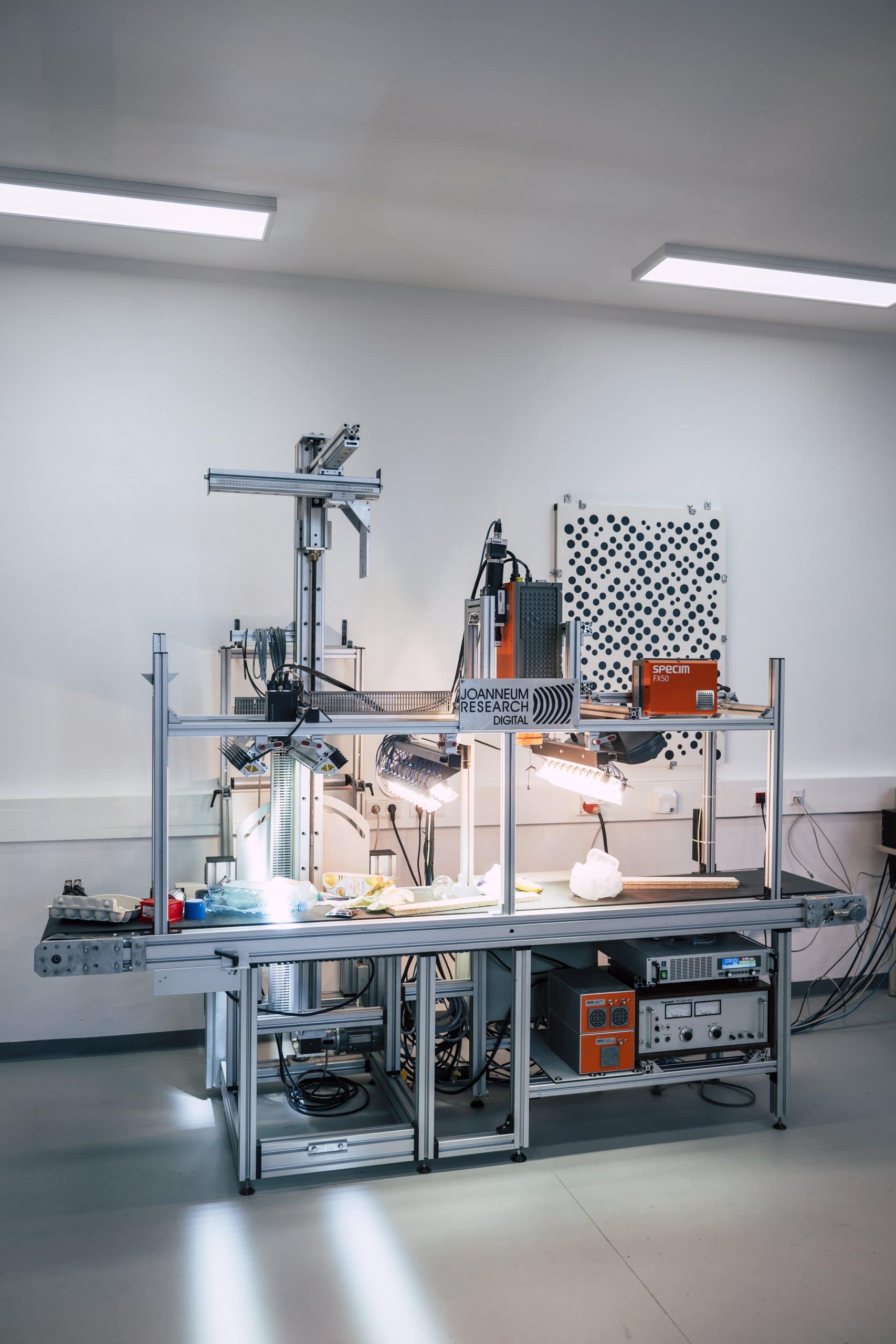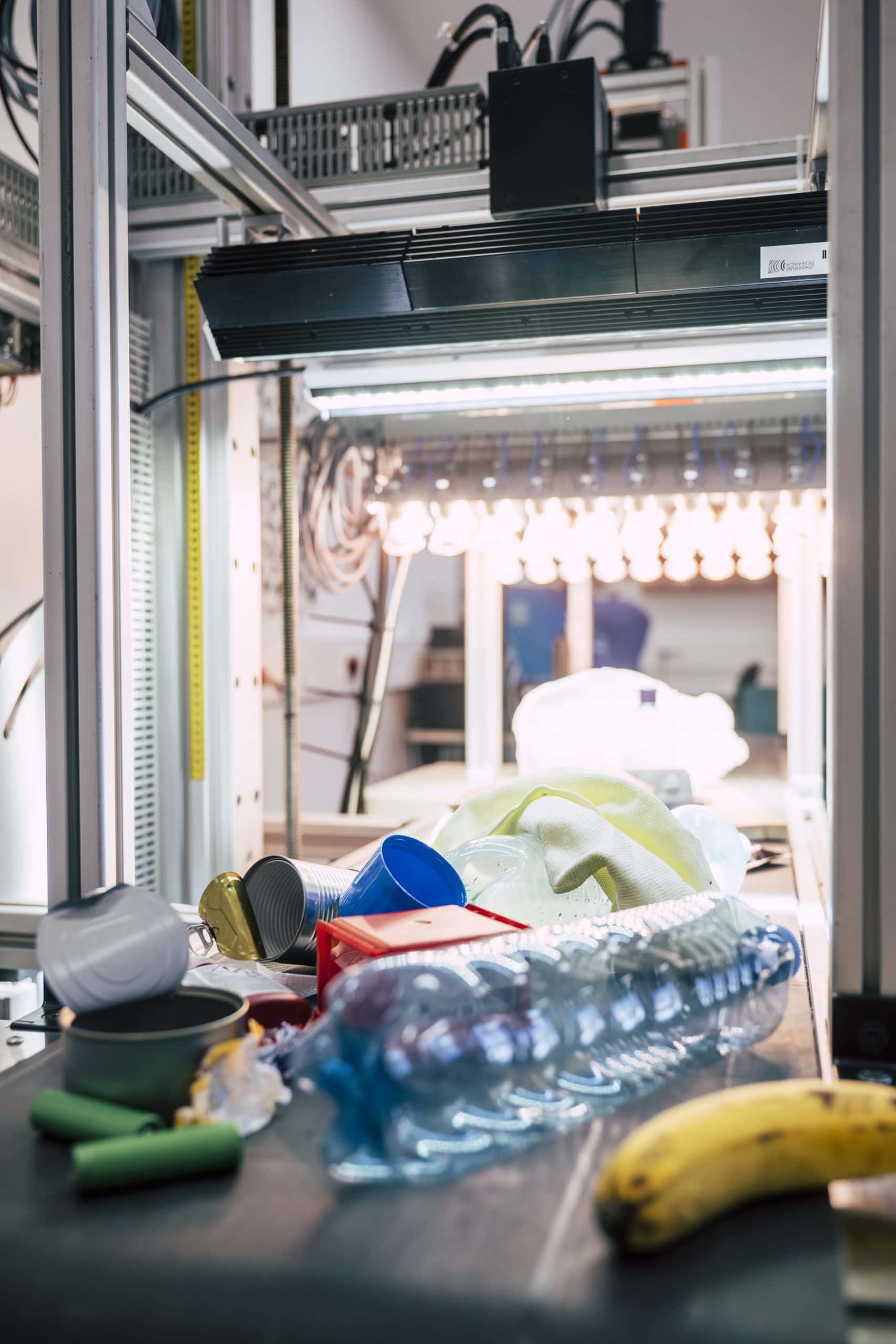 Wir forschen an einer weitgehend automatisierten Charakterisierung der enthaltenen Wert- und Störstoffe. Hohes Potenzial wird in der Fusion und der multidimensionalen Datenanalyse aus allen echtzeitfähigen Sensoren in Kombination mit Algorithmen aus dem Bereich der Künstlichen Intelligenz gesehen. Neue multispektrale Kamerasysteme erlauben die Aufnahme von Datensätzen in mehreren Wellenlängen – im Bereich des sichtbaren bis hin zum Nahinfrarot Bereich. Aus diesen Daten lassen sich vielfältige Materialeigenschaften ableiten, die zur Charakterisierung der Zusammensetzung von Stoff- bzw. Produktströmen, wie zum Beispiel in der Mülltrennung, zum Einsatz kommen.