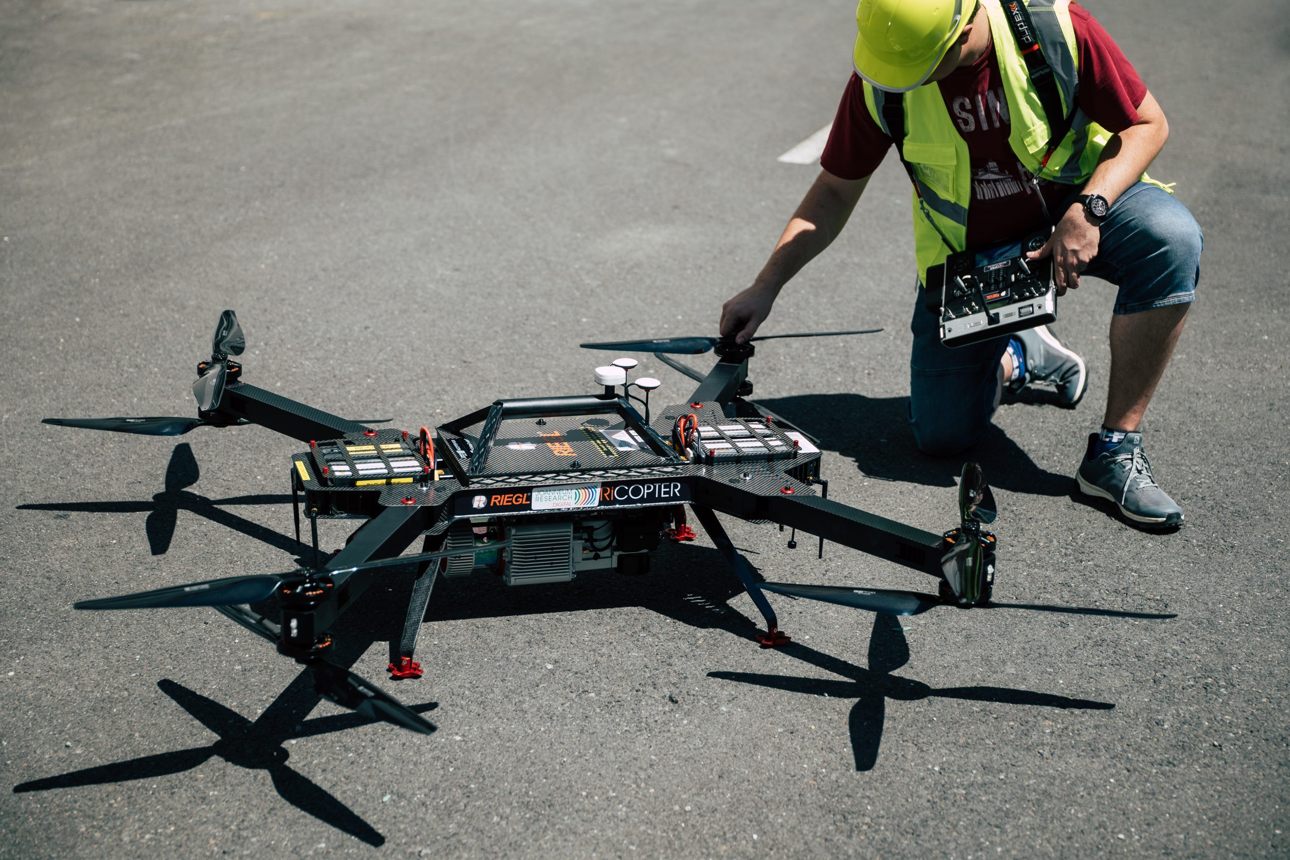 Die Drohne ist ein vollständig integriertes System für UAV-basierte Vermessungsaufgaben. Mit einem Gewicht von 11 kg und einer Tragfähigkeit von 7 kg kann sie einen Laserscanner, eine optische Kamera und eine Thermal-Kamera tragen und pro Flug können 2 km² abgedeckt werden.