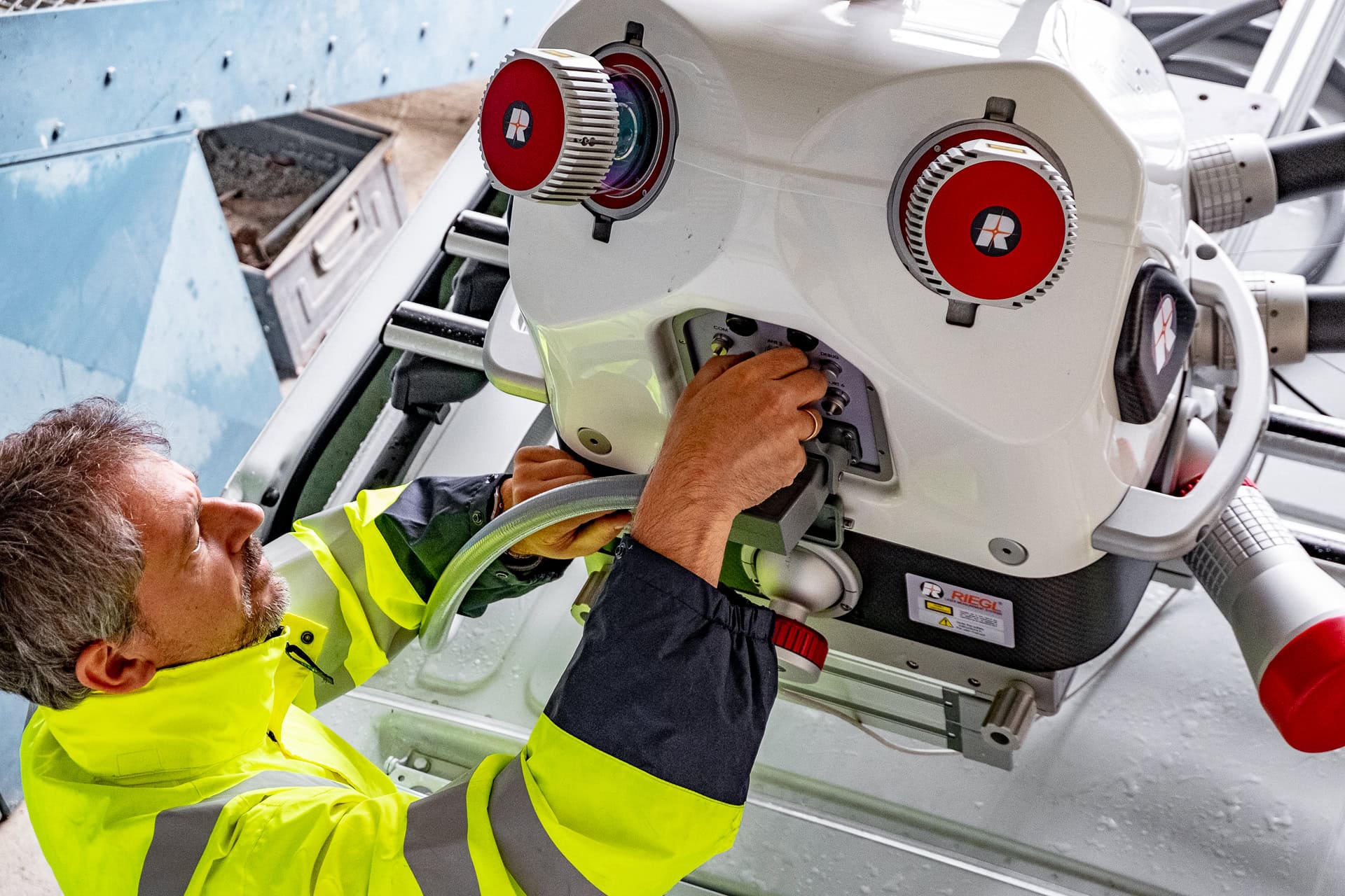 Das Riegl VMX-2HA ist die neueste Generation des fahrzeuggestützten Mobile Mapping Systems der Firma RIEGL. Eingesetzt wird es auf einem Messfahrzeug zur millimetergenauen Vermessung des Straßenraums. Zwei Laserscanner nehmen 3,6 Mio Messpunkte/Sekunde auf, 7 Kameras und eine Panoramakamera können 114 Megapixel ablichten.
