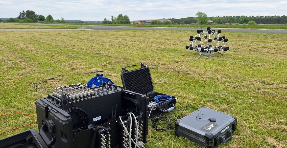 Ein zentraler Meilenstein des Projekts fand kürzlich am AIRlabs-Testgebiet LOGG Punitz (Burgenland) statt: Dort wurden an zwei aufeinanderfolgenden Tagen umfangreiche Messkampagnen durchgeführt. JOANNEUM RESEARCH DIGITAL war mit einem Expertenteam vor Ort aktiv an den Flugtests beteiligt. Auch unsere eigene Drohne, eine DJI Matrice 300, kam dabei zum Einsatz. Insgesamt wurden sechs unterschiedliche Multikopter unter realen Bedingungen getestet, um deren akustische Emissionen systematisch zu erfassen.