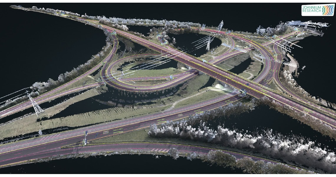 Die Ableitung von exakten digitalen Zwillingen der Straße ist hierbei unser zentrale Stärkefeld. Die hochgenauen, korrekten und vollständigen Abbildungen der Realität werden von Partnern und Kunden operativ als Referenz für Testfahrten und für die Simulation von automatisierten Fahrzeugen in Validierungsprojekten eingesetzt. Durch die wesentlich höhere Auflösung im Vergleich zu Einzelsystemen können universelle digitale Zwillinge von Gebieten erzeugt werden, welche für verschiedene Aufgaben genutzt werden können. Die Abbildung von Gebäuden, überdachten Bereichen und Vegetationsflächen mit hohem Detailgrad kann neue Themenfelder in Simulation, Raumplanung, Asset Management, Building Information Modeling und Ausbildung eröffnen.