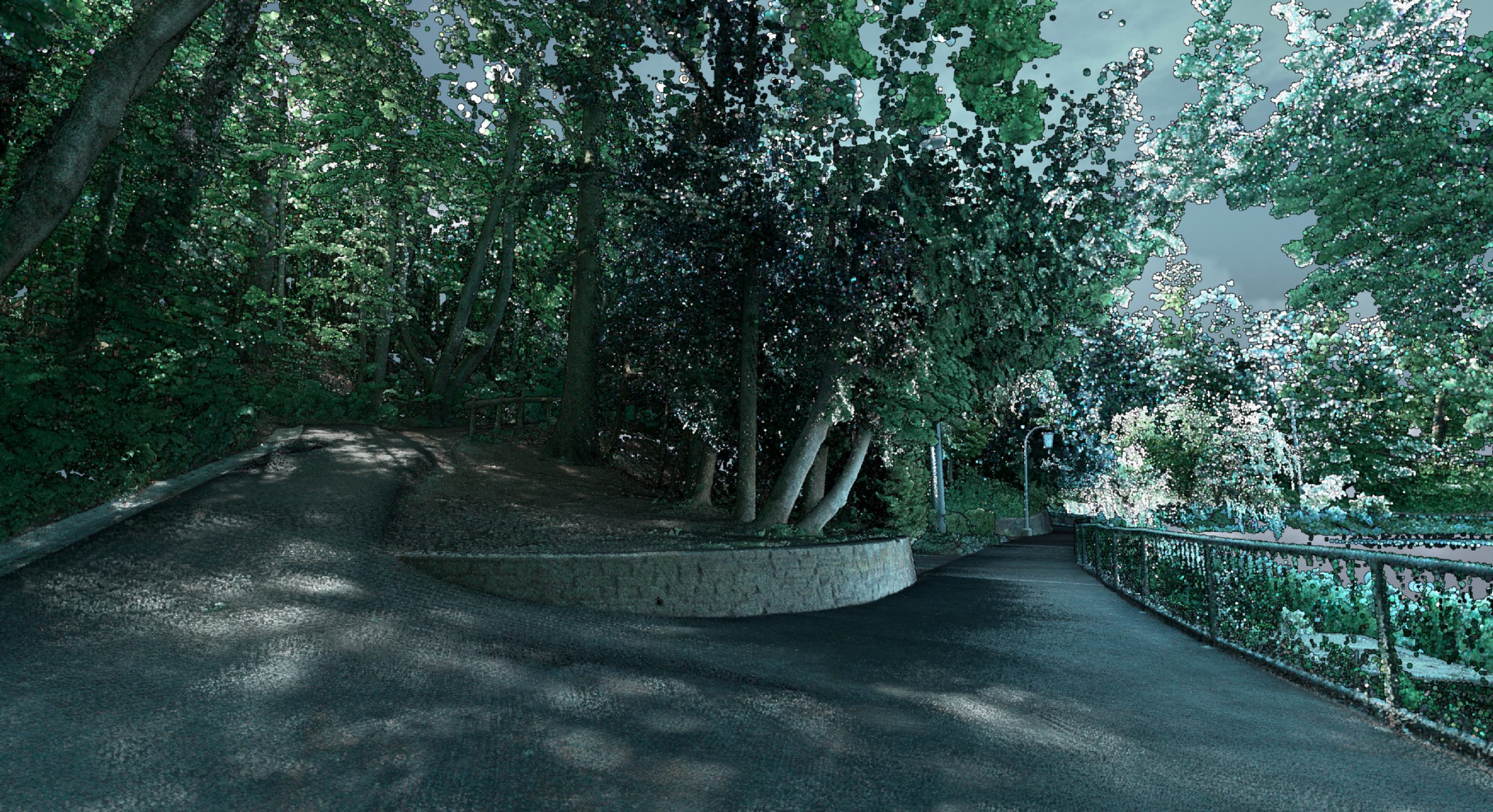 Kombination hochgenauer 3D-Laserscans mit Messbildern der Umgebung durchgeführt aus der Luft, am Fahrzeug oder zu Fuß