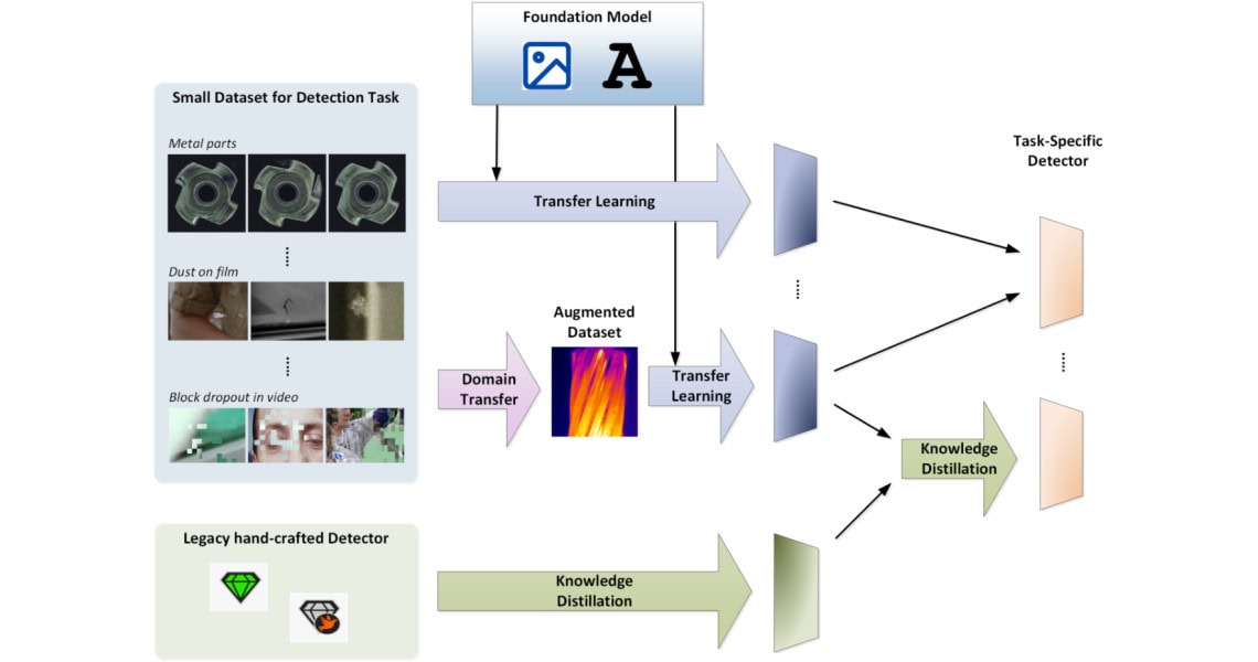 Ein weiterer wichtiger Aspekt ist die Erfassung des Expertenwissens, das in den vorhandenen, manuell gebauten Detektoren steckt. Knowledge Distillation wird eingesetzt, um dieses spezifische Wissen zu lernen. Dies ist skalierbar und ohne zusätzliche manuelle Annotation möglich. Zur Überbrückung größerer Domänenlücken (Domain Adaptation) werden generative Ansätze wie GANs und Diffusionsmodelle untersucht, um z.B. Style Transfer zwischen Domänen wie RGB und Infrarot durchzuführen.