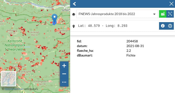 Im Projekt FNEWs wurde ein nationales fernerkundungsbasiertes Erfassungssystem für Waldschäden in Deutschland entwickelt und in vier deutschen Bundesländern trainiert, getestet und validiert.