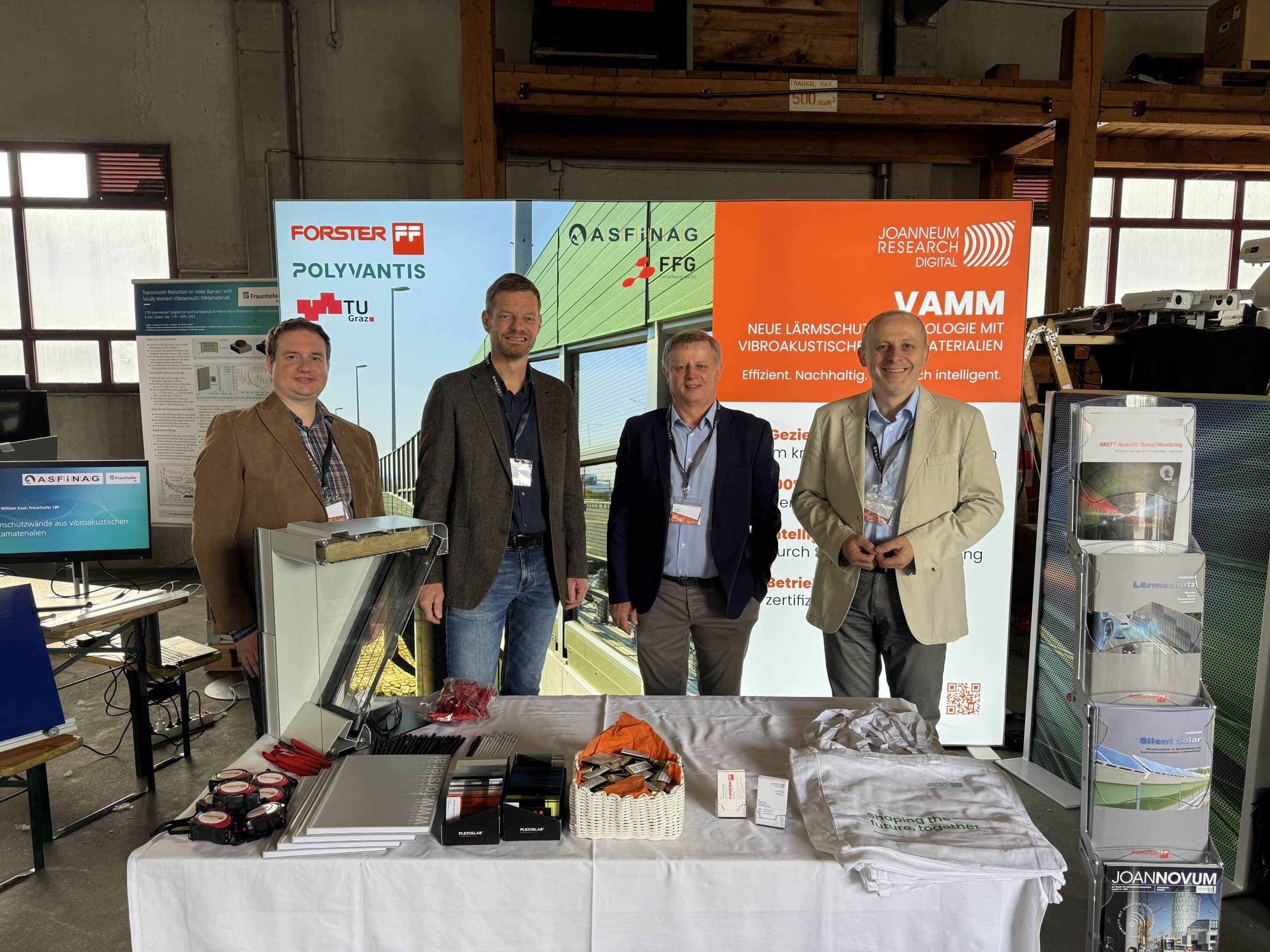 Unser Projekt stieß auf reges Interesse. Viele Besucher*innen informierten sich über das Potenzial von VAMM zur gezielten Schallreduktion im Verkehrslärmbereich, den Einsatz nachhaltiger Materialien und die geplante Umsetzung an realen Autobahnstandorten. Besonders positiv aufgenommen wurden die Aspekte der 100-prozentigen Recyclingfähigkeit und der CO₂-Reduktion in der Herstellung.