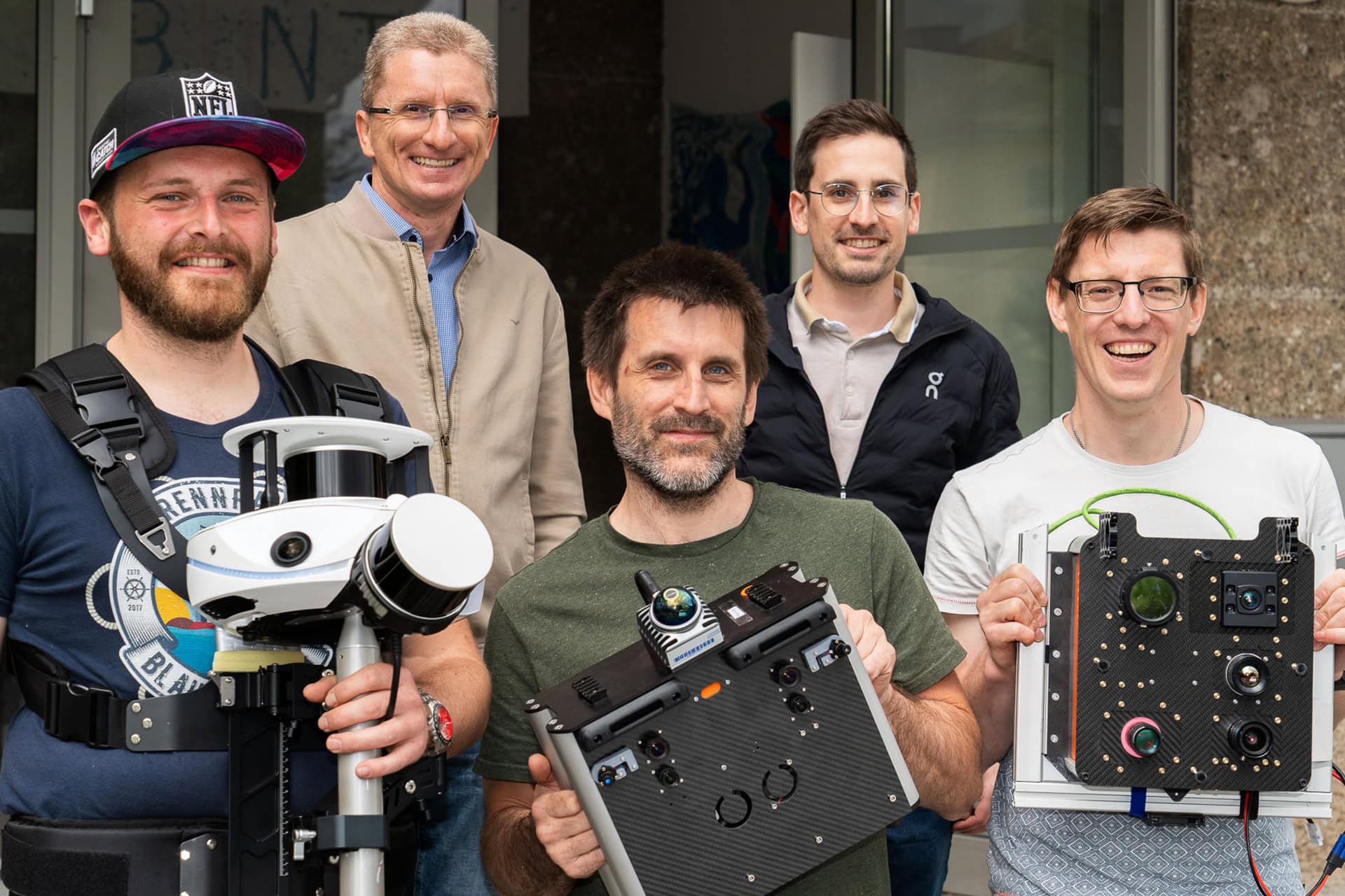 Georg Thallinger, Projektleiter von JOANNEUM RESEARCH, erklärt die Vorgehensweise bei der Bestandsaufnahme: „Wir erfassen unter realen Bedingungen mit zwei unterschiedlichen tragbaren 3D-Scannern das gesamte Gebäude, vom Keller bis zum Dach. Das Verfahren ermöglicht die Erstellung von Punktwolken und digitalen Gebäudemodellen, sprich 3D-Modellen. So können wir in dem Projekt zwei Systeme testen: ein kommerzielles kostenintensives und ein sparsames, das wir selbst entwickelt haben.“JR-Forscher Gerald Lodron hat vor Ort die sparsame Variante getestet: „Dieses von uns konzipierte und erstellte mobile System mit mehreren Kameras und LiDAR arbeitet mit preisgünstiger Sensorik und erzielt dabei eine hohe Messgenauigkeit im Bereich von ein bis zwei Zentimetern. Damit schaffen wir die Voraussetzung, um Materialien automatisiert zu erfassen und Rückschlüsse auf Wiederverwendbarkeit und Sanierungspotenzial zu ziehen. Die Erstellung der Punktwolken und weitere Auswertungen erfolgen allerdings erst nach der Aufnahme.“