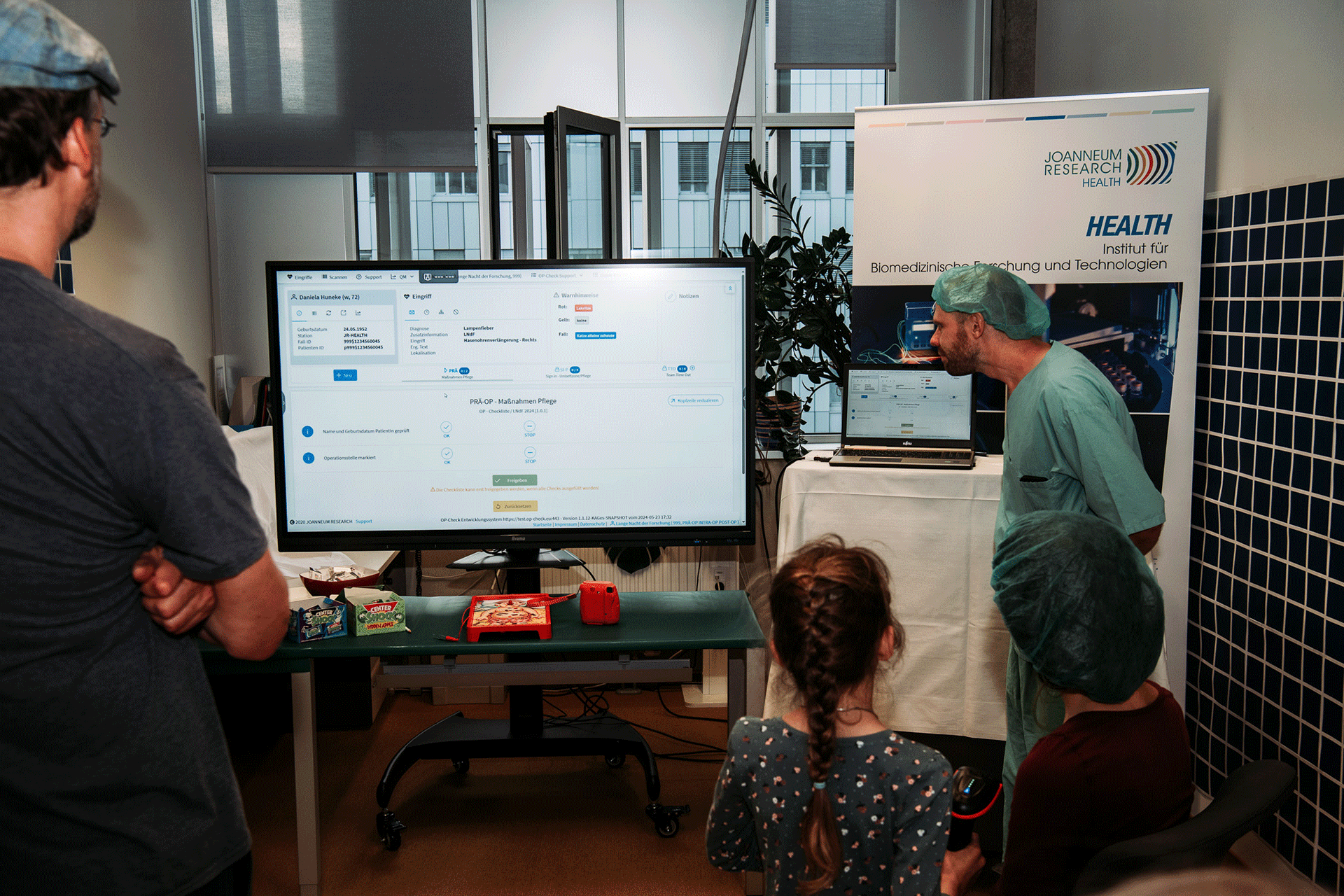 Die Lange Nacht der Forschung wurde in der Steiermark wieder von der JOANNEUM RESEARCH koordiniert. Und auch die Institute gaben vielfältige Einblicke in ihre Forschungstätigkeit: So konnten die Besucher*innen bei DIGITAL in Graz mehr über Waldmonitoring mit Drohnen und Satelliten, das Scannen zur genaueren Trennung von Restmüll, die Vermessung von Regen und über das frühzeitige Erkennen des Demenzrisikos erfahren. Bei HEALTH konnten Besucher*innen in die Rolle von Krankenhausmitarbeiter*innen schlüpfen und eine digitale OP-Checkliste durchspielen. Bei COREMED drehte sich alles um die Haut: Es ging um funktionelle Wundauflagen und man konnte sich an einem Demonstrator am Nähen von Wunden üben. MATERIALS öffnete die Pforten in Niklasdorf, Pinkafeld und Weiz und gab Einblicke in die Materialbearbeitung mit Atmosphärendruck-Plasma-Beschichtung, 3D-Metall-Druck und in auf Folien geprägte Bionik-Lösungen für Flugzeuge sowie Windkraft. Was man mit Robotern alles machen kann, erfuhr man am Institut ROBOTICS in Klagenfurt. So konnte man etwa gegen einen Roboter Vier-gewinnt spielen.