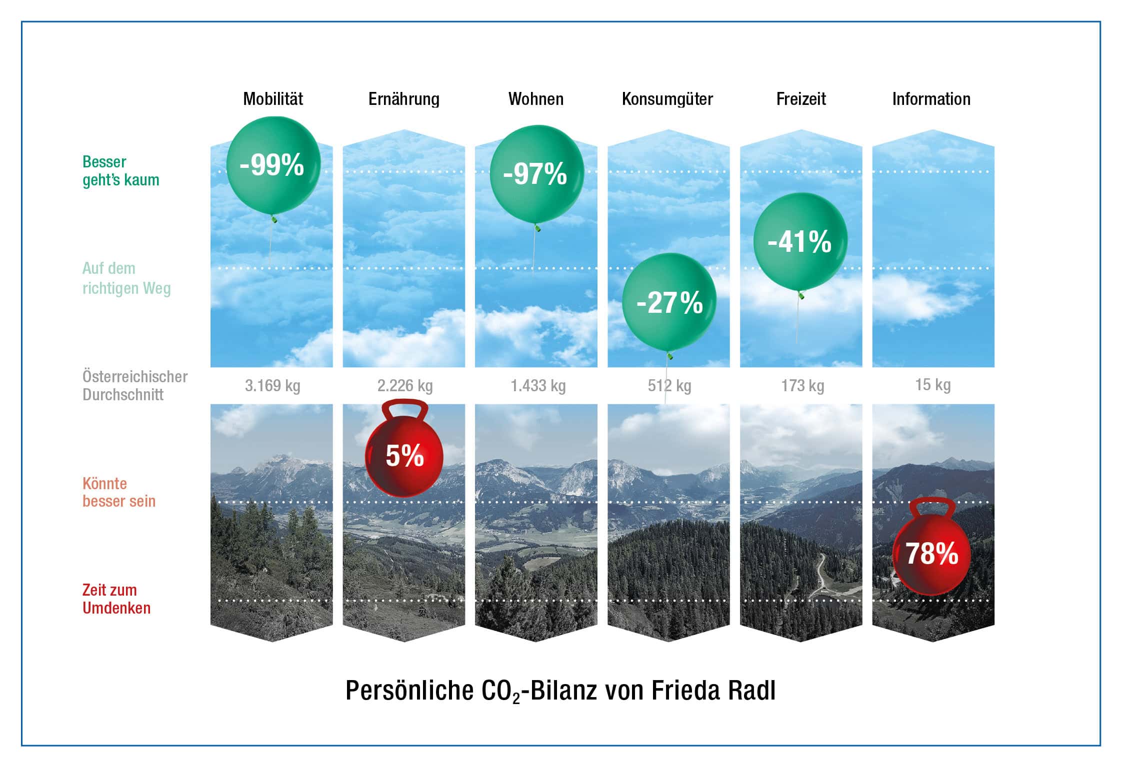 Stellen Sie Ihren Mitarbeiter*innen mit dem Climate LIFEstyle Check ein attraktives Tool bereit, das den Einfluss der Lebensgestaltung auf die Treibhausgasemissionen misst und Verbesserungsmöglichkeiten identifiziert.
