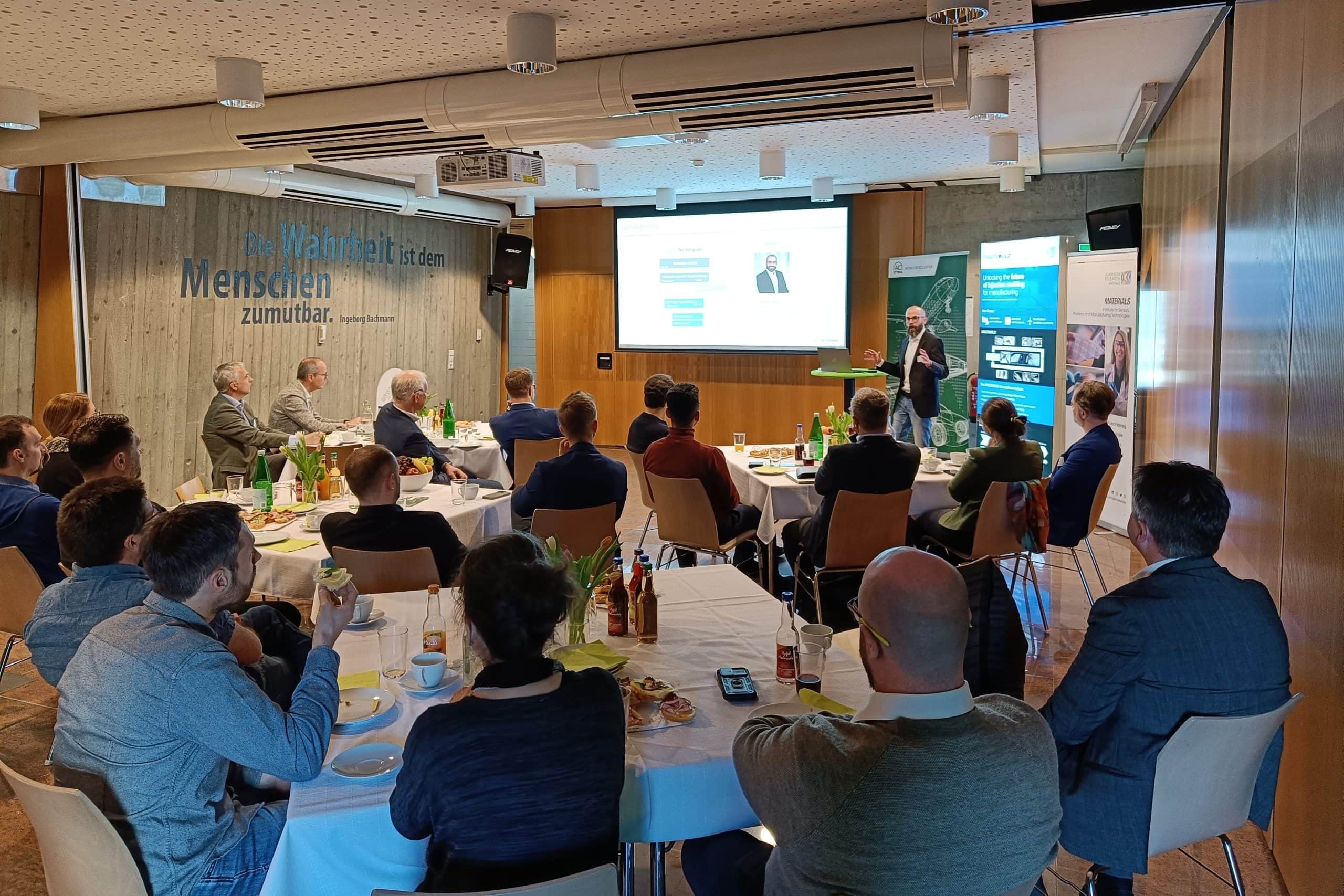 Anlässlich der Eröffnung unseres neuen Schauraums am Institut MATERIALS in Weiz fand am 18. März 2025 eine gemeinsame Veranstaltung mit dem AC Styria im Rahmen des Veranstaltungsformats „Technologiefrühstück“ statt.