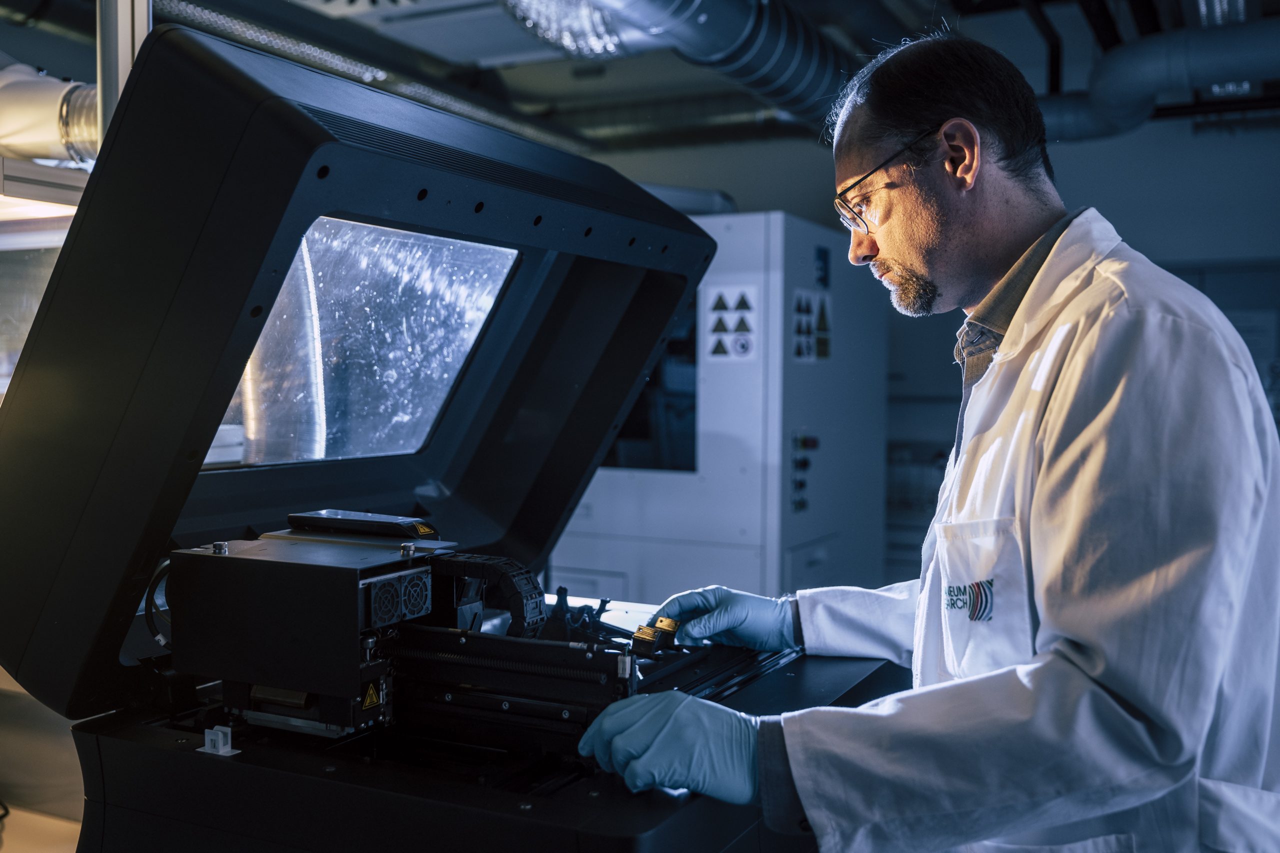 Die hochpräzise maskenlose Laseranlage (MALA) ist für die Herstellung von hochkomplexen und stufenlosen Mikrooptik-Strukturen geeignet.