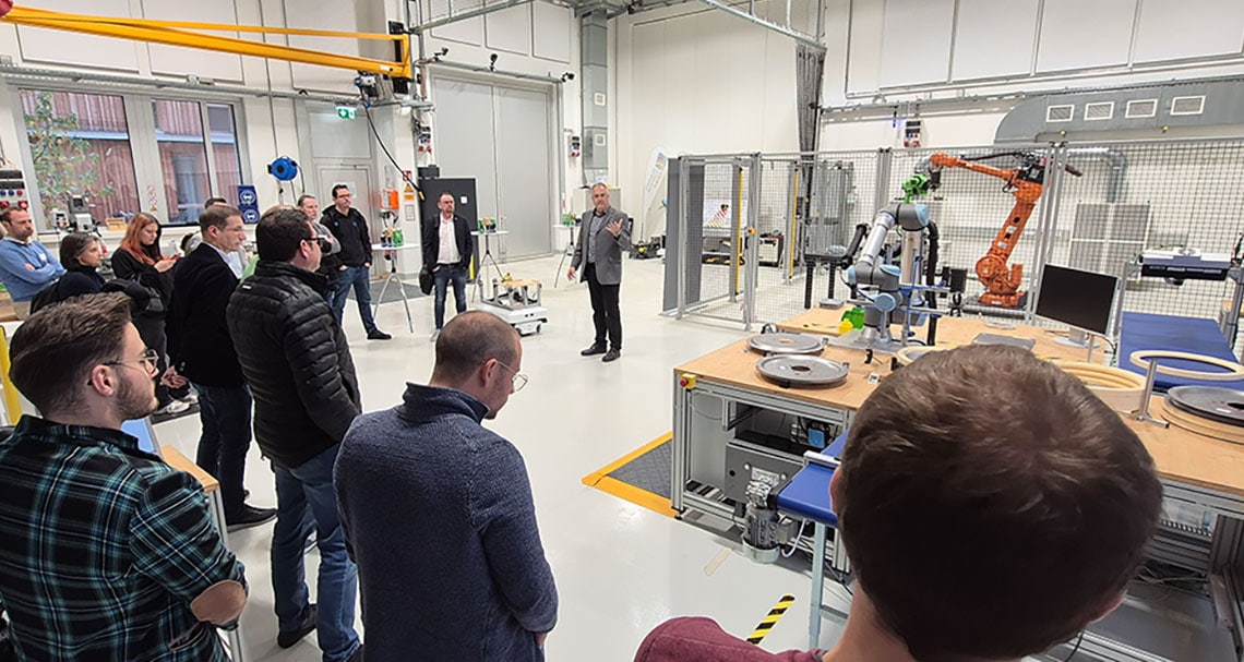 Im Anschluss gab es noch eine interaktive Session im ROBOTICS Solution Center, wo die Teilnehmenden selbst erleben konnten, wie Roboterlösungen in der Praxis funktionieren. Der direkte Austausch mit Expert*innen ermöglichte es, spezifische Fragen zu klären und sich über individuelle Herausforderungen und Chancen auszutauschen.